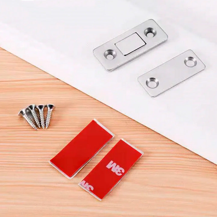 Fácil de instalar y ultra discreto, mantiene cerradas puertas, armarios, cajones o gabinetes de forma segura y sin cerraduras complicadas. Ideal para cocinas, baños, habitaciones, escritorios, muebles de oficina o cualquier rincón del hogar.