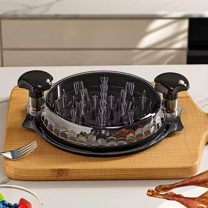 Este innovador desmenuzador te permite triturar pollo, cerdo, carne de res y verduras en cuestión de segundos. Con solo unas pocas rotaciones, obtendrás hebras perfectas sin necesidad de utilizar cuchillos o garras tradicionales. Su sistema optimizado facilita la tarea, ahorrando tiempo y esfuerzo en la cocina.